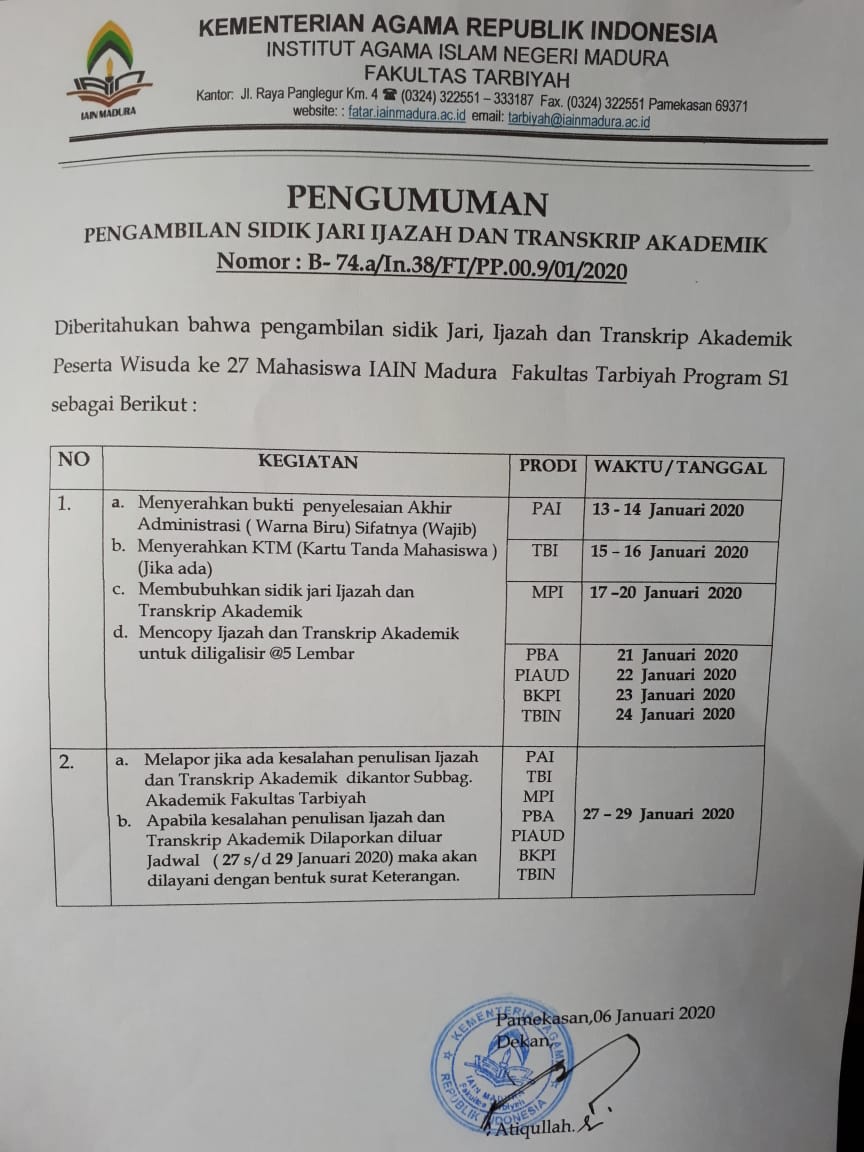 Pengumuman Pengambilan Sidik Jari Ijazah dan Transkip Genap 2020