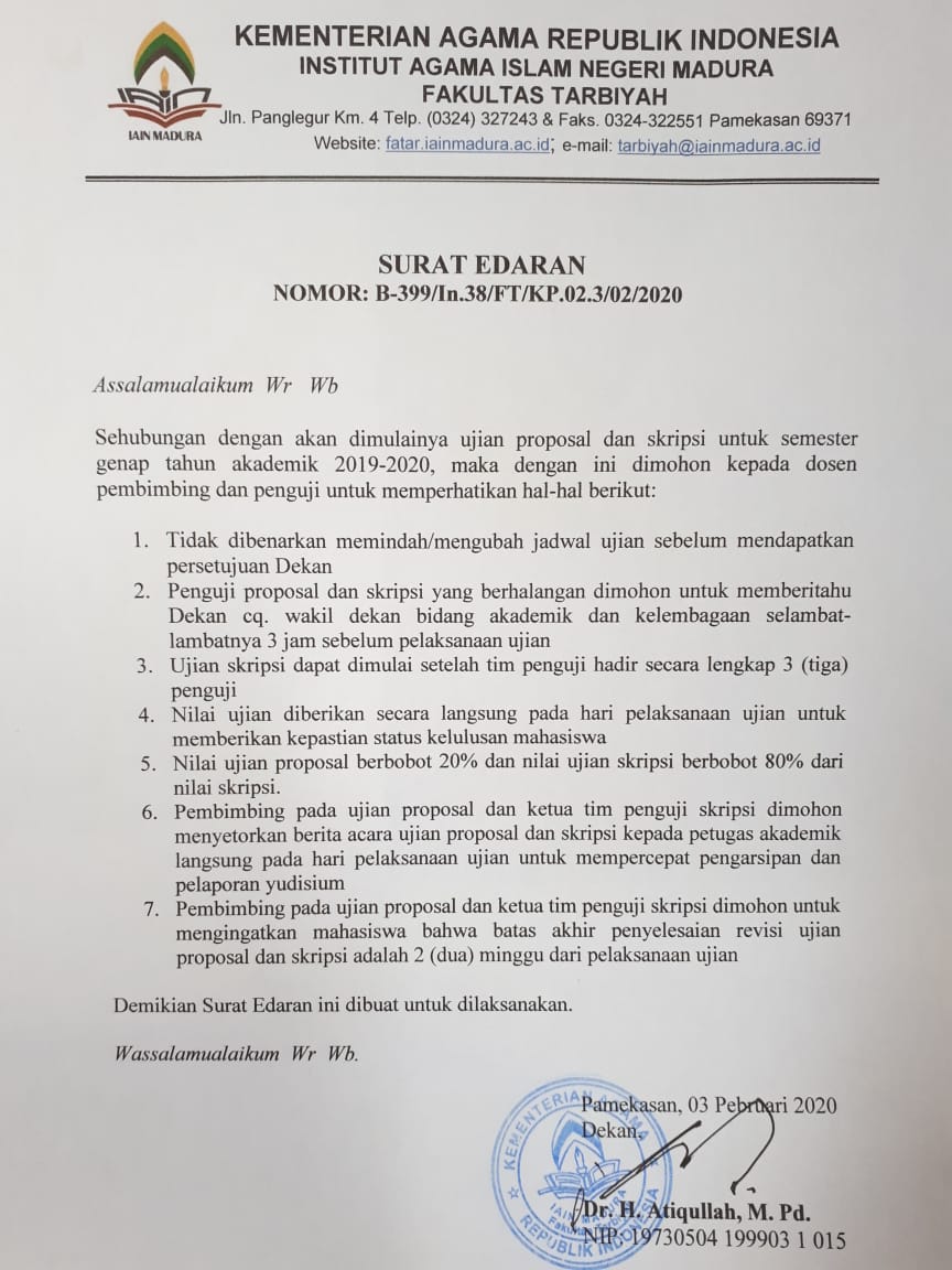 Surat Edaran tentang Pelaksanaan Ujian Proposal dan Skripsi